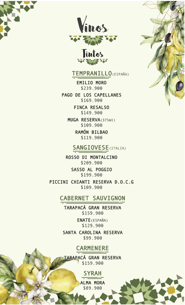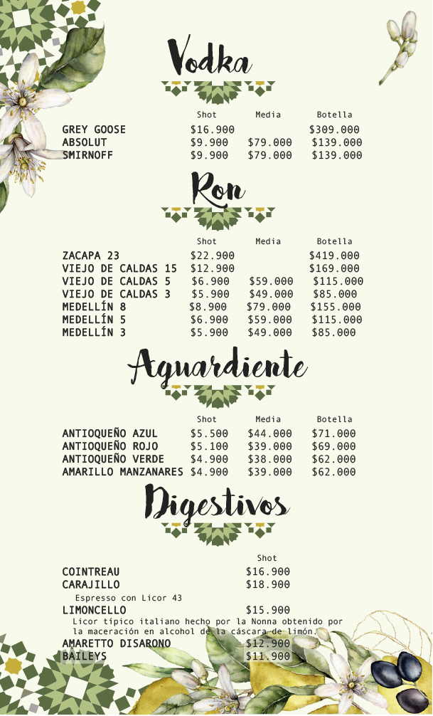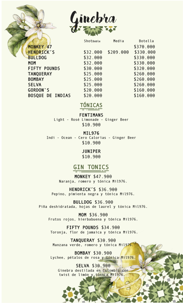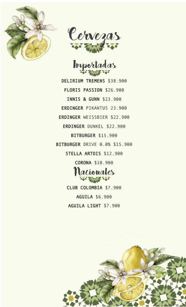 • Medellín English Menu